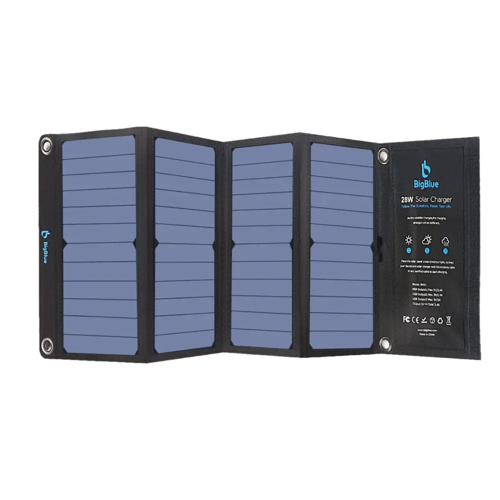 מצויד בשלוש יציאות USB (סוג A) משודרגות. כל פלט מקסימלי הוא 5V/2.4A והזרם המרבי הכולל הוא 5V/4.8A. מטען סולארי BigBlue SolarPowa 28 (ללא מד זרם) מאפשר לך לרתום את אנרגיית השמש לטעינת מכשירים מרובים בו זמנית.